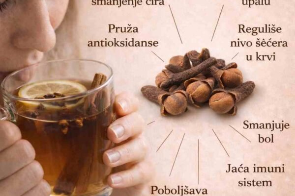 Karanfilić je sitan začin, ali sa izuzetno snažnim ljekovitim svojstvima. Već stoljećima se koristi u prirodnoj medicini zbog svog blagotvornog djelovanja na cijeli organizam. Kada se karanfilić prokuha u vodi, dobija se prirodan napitak koji pozitivno utiče na zdravlje. Voda sa karanfilićem pomaže u čišćenju organizma, jer ima antibakterijska i antioksidativna svojstva koja pomažu u izbacivanju…