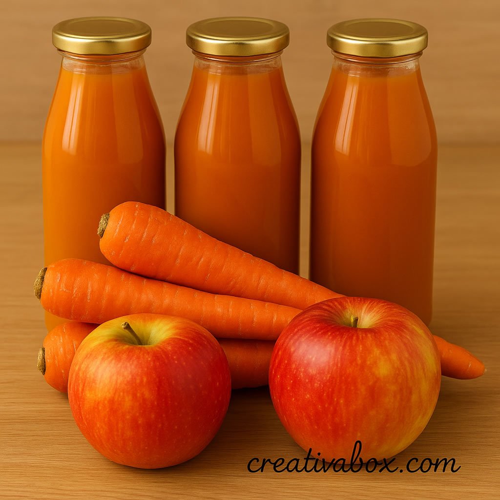 Ovaj sok od jabuka i šargarepe je potpuno prirodan, bez konzervansa i aditiva. Može se čuvati mesecima na hladnom i tamnom mestu.