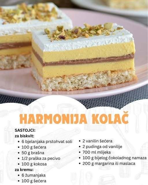 Ako ste ljubitelj nježnih, kremastih i bogatih deserata, recept za Harmonija kolač predstavlja pravi užitak za vaša čula. Ova poslastica je izuzetno popularna zbog svoje rafinirane kombinacije ukusa, jednostavne pripreme i elegancije kojom se izdvaja na svakoj trpezi. Harmonija kolač objedinjuje prozračni kokosov biskvit, svilenkastu kremu s notama vanile i bele čokolade, te zavodljivi premaz od mlečne čokolade i šlaga. U ovom recepta, vodićemo vas korak po korak kroz pripremu ove fantastične torte, uz dodate savete, stilizovanu prezentaciju i dublje razumevanje svake faze.