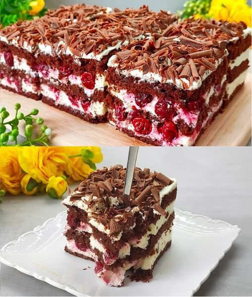 Uživajte u svojoj domaćoj čokoladnoj torti od višanja sa savršenom kombinacijom sočnih višanja i bogate čokolade, sve umotano u slatku kremu od putera!