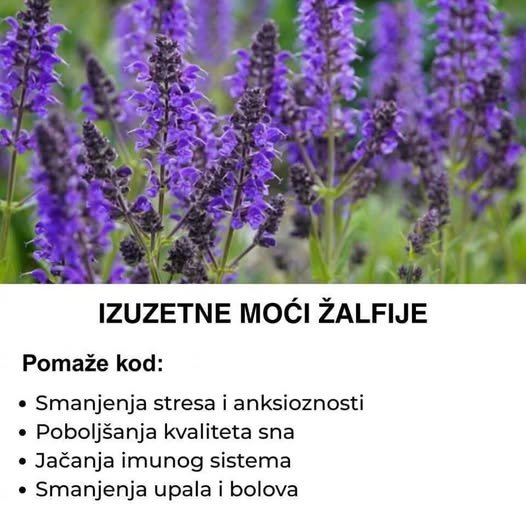 Žalfija je biljka s neverovatnim lekovitim svojstvima koja mogu poboljšati vaše zdravlje na mnogo različitih načina. Od smanjenja stresa i poboljšanja sna do jačanja imunog sistema i smanjenja upala, žalfija je prirodni saveznik u borbi za bolje zdravlje. Uključite ovu moćnu biljku u svoju svakodnevnu ishranu ili je koristite kao čaj i uživajte u svim njenim prednostima.