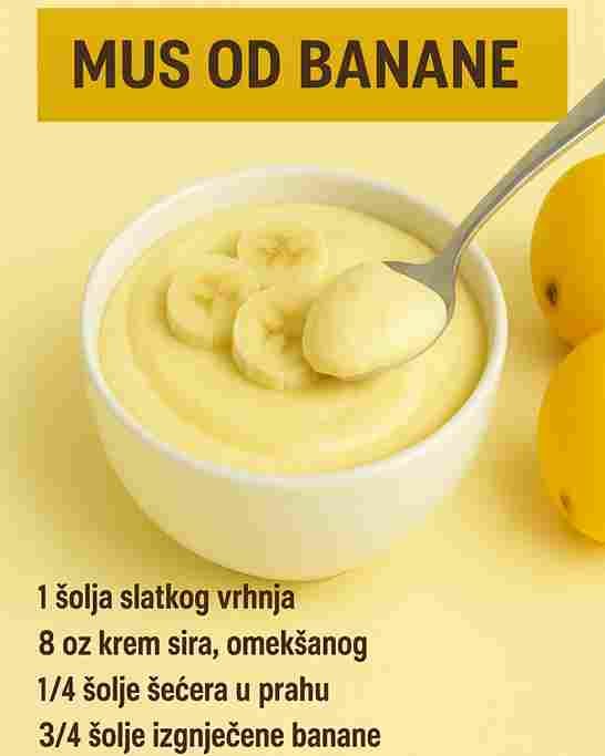 4. Lagano umiješajte umućeno vrhnje u smjesu s bananom, pazeći da ostane prozračno.