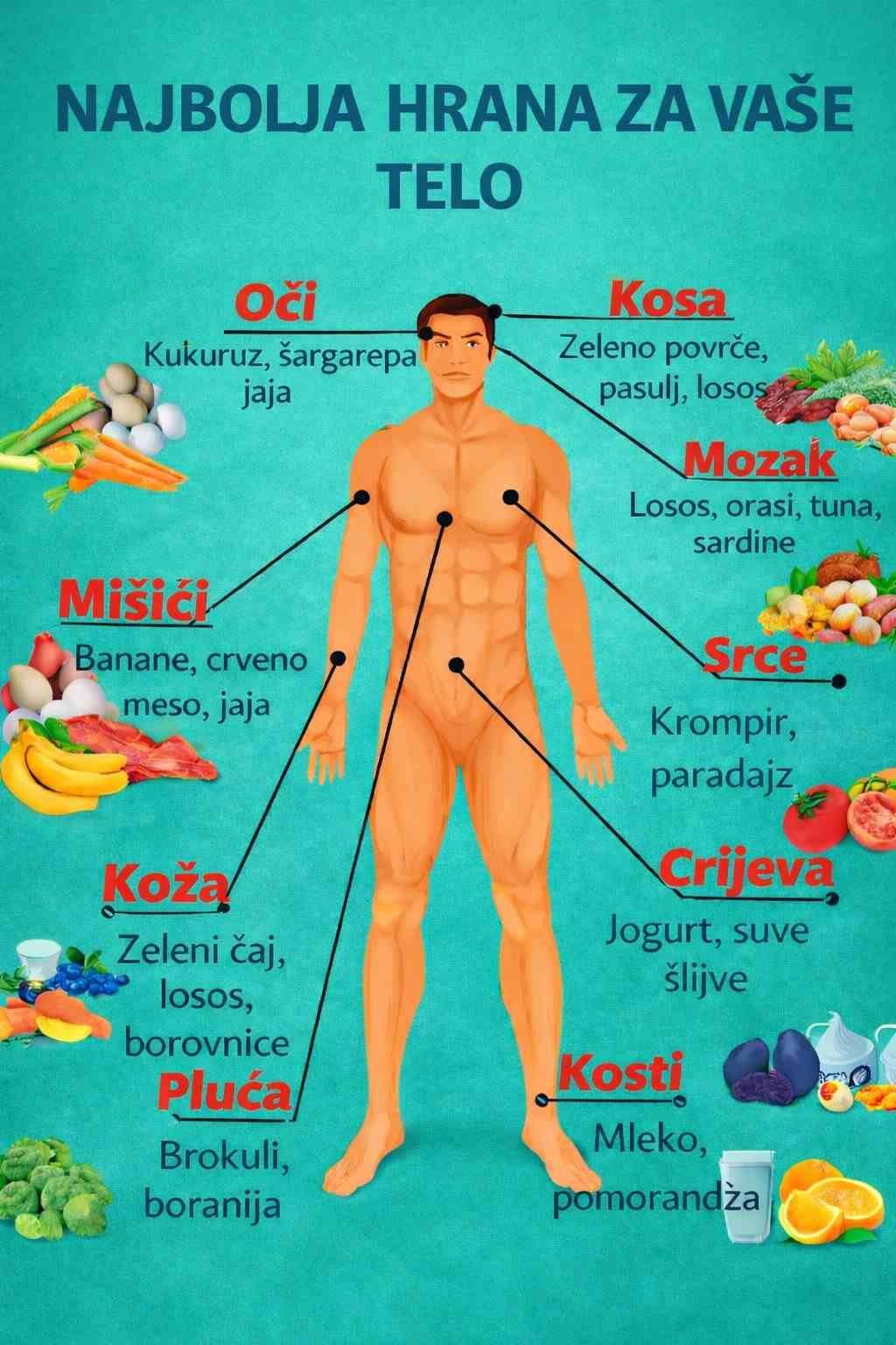 Naše tijelo je sofisticirana mašina kojoj je potrebno specifično gorivo da bi se optimalno funkcionisalo. Odabirom namirnica koje su bogate ciljanim hranljivim materijama možemo direktno uticati na zdravlje i snagu pojedinih organa, mozga do kostiju.