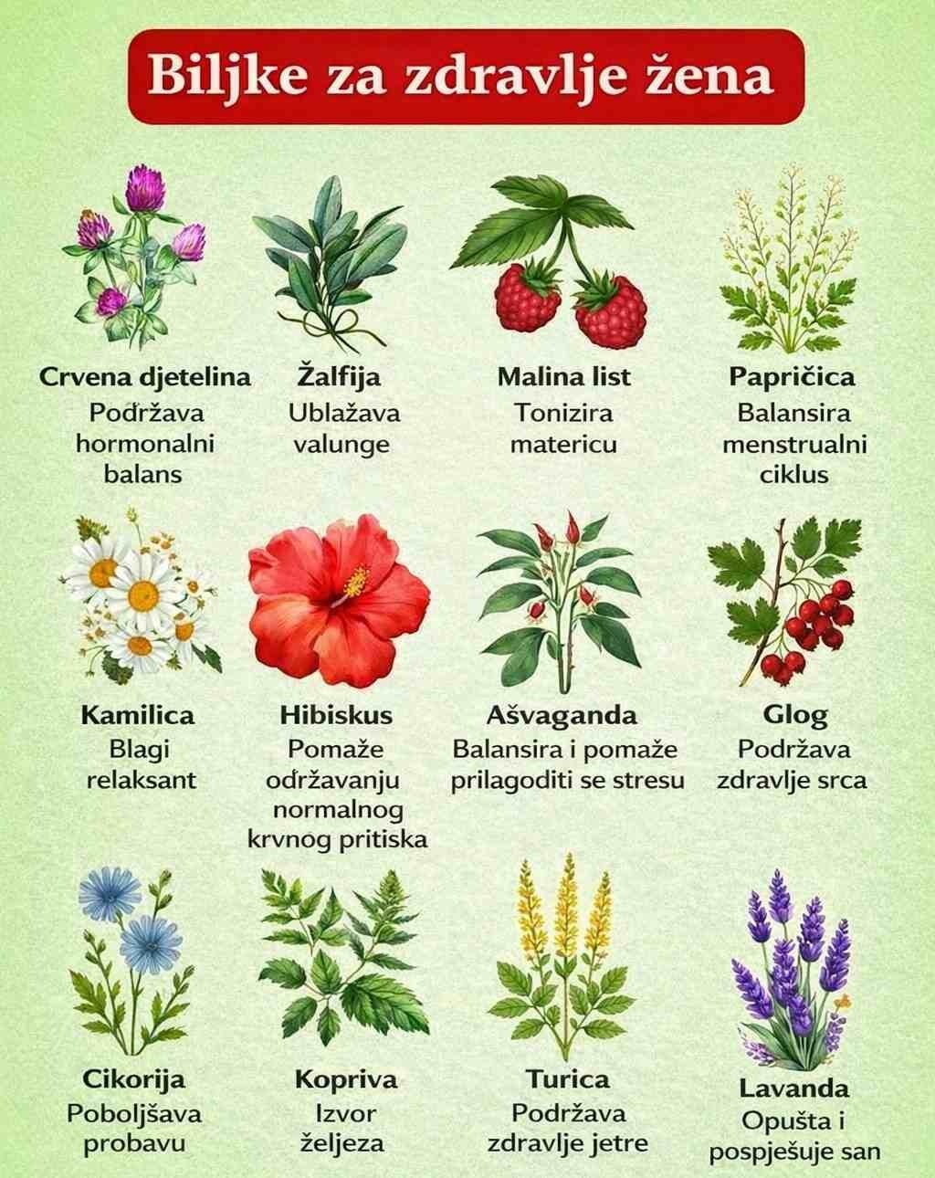 Ove biljke ističu snažnu vezu između prirode i ženskog zdravlja. Iako nisu zamjena za medicinski tretman, mogu biti vrijedan dio uravnoteženog načina života usmjerenog na ishranu, opuštanje i holističku njegu. Uvijek se konsultujte sa zdravstvenim radnikom prije redovne upotrebe biljnih lijekova.