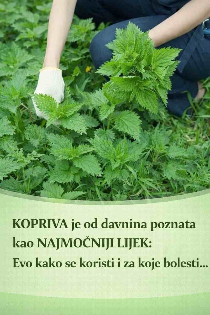 Moćno povrće Uvrštavanjem koprive u jelovnik dobiva se povrće koje u organizmu utječe na niz funkcija metabolizma, od poticanja funkcije žlijezda za jače izlučivanje probavnih sokova koji pomažu u razgradnji masti, bjelančevina, ugljikohidrata i ostalih sastojaka u hrani koju uzimamo, do unošenja vrijednih sastojaka, od vitamina, minerala, esencijalnih kiselina do biljnih hormona. Ljekovito djelovanje enzima sekretina koji sadrži kopriva utječe na povećavanje broja crvenih krvnih stanica, na razinu šećera u krvi (smanjuje je), na žlijezde koje potiče na rad i na sprečavanje porasta bijelih krvnih zrnaca kad je riječ o radioaktivnom zračenju te za liječenje posljedica radioaktivnog zračenja. Uzimanje svježeg soka i čaja od koprive korisno je u liječenju: raznih anemija (naziva se još i željezni tonik), u prevenciji ateroskleroze, bubrežnih oboljenja i upala mokraćnih kanala i mjehura (za jače mokrenje, kod cistitisa, infekcija, raznih iritacija, krvarenja, kod pojave krvi u mokraći, katara, kamenaca i pijeska), bolesti prostate (upale, infekcije, benigne hiperplazije prostate (BHP), povećane prostate, pri teškoćama u mokrenju – ekstrakt od korijena koprive stimulira muške hormone – testosteron i ženske – estrogen). Pomaže oboljelima od šećerne bolesti jer smanjuje razinu šećera u krvi i dobra je dijetalna namirnica, preporučuje se oboljelima od Alzheimerove bolesti, multiple skleroze, zatvora, pogotovo za odstranjivanje određenih zadebljanja, zaustavlja i sprečava krvarenje, naročito iz nosa (u nos se ukapa svježi sok iz listova koprive) te krvarenja iz maternice, pluća, crijeva, bubrega i mokraćnih putova, a izvrsno djeluje i kod hemofilije te kod krvarenja slabih krvnih žila. Pomaže kod peludne groznice i ostalih vrsta alergija (otvara začepljen nos te ublažava i liječi infekcije koje izaziva alergen), pobuđuje izmjenu tvari, jača i čisti krv i cijeli organizam, liječi bolesti metabolizma, jača imunitet, snižava visok tlak, sprečava stvaranje kamenaca i pijeska u bubregu i mjehuru i uništava ih, liječi posljedice radioaktivnog zračenja, pojačava stvaranje mlijeka u dojilja, potiče rast kose, sprečava ćelavost i otklanja prhut, liječi jetru (detoksicira i jača, masna jetra, žutica, insuficijencija jetre, slaba jetra), dobra je za bolesti žuči i slezene, bolesti želuca i crijeva (katar, gastritis, krvarenja, proljevi, upale crijeva, kronične upale tankog crijeva…), kod oboljenja dišnih putova i organa, kod raznih tumora i težih oboljenja, kožnih oboljenja (nečistoće, sunčane pjege, opekline, ekcemi, koprivnjače). Žarenjem bolnih reumatskih mjesta svježom koprivom, kao i kod išijasa, olakšavaju se bolna stanja, pojačava protok površinske cirkulacije kože, raznih rana, a naročito venskih rana na potkoljenici (pije se čaj od koprive i rana se maže svježim sokom, a tinkturom od koprive se čisti – također se može stavljati oblog od kratko prokuhanih listova koprive na veće venske rane), bolesti ženskih spolnih organa i menstrualnih tegoba (razne bakterijske infekcije, infekcije s kandidom, kod neredovitog ciklusa, predmenstrualni sindrom), reume kostiju i zglobova (osteoartritis, reumatoidni artritis, burzitis, tendinitis), gihta (pojačano izlučuje mokraćnu kiselinu), hemoroida (ispiranje čajem). Umjesto soka od koprive koristi se čaj od osušene koprive, prema receptu.