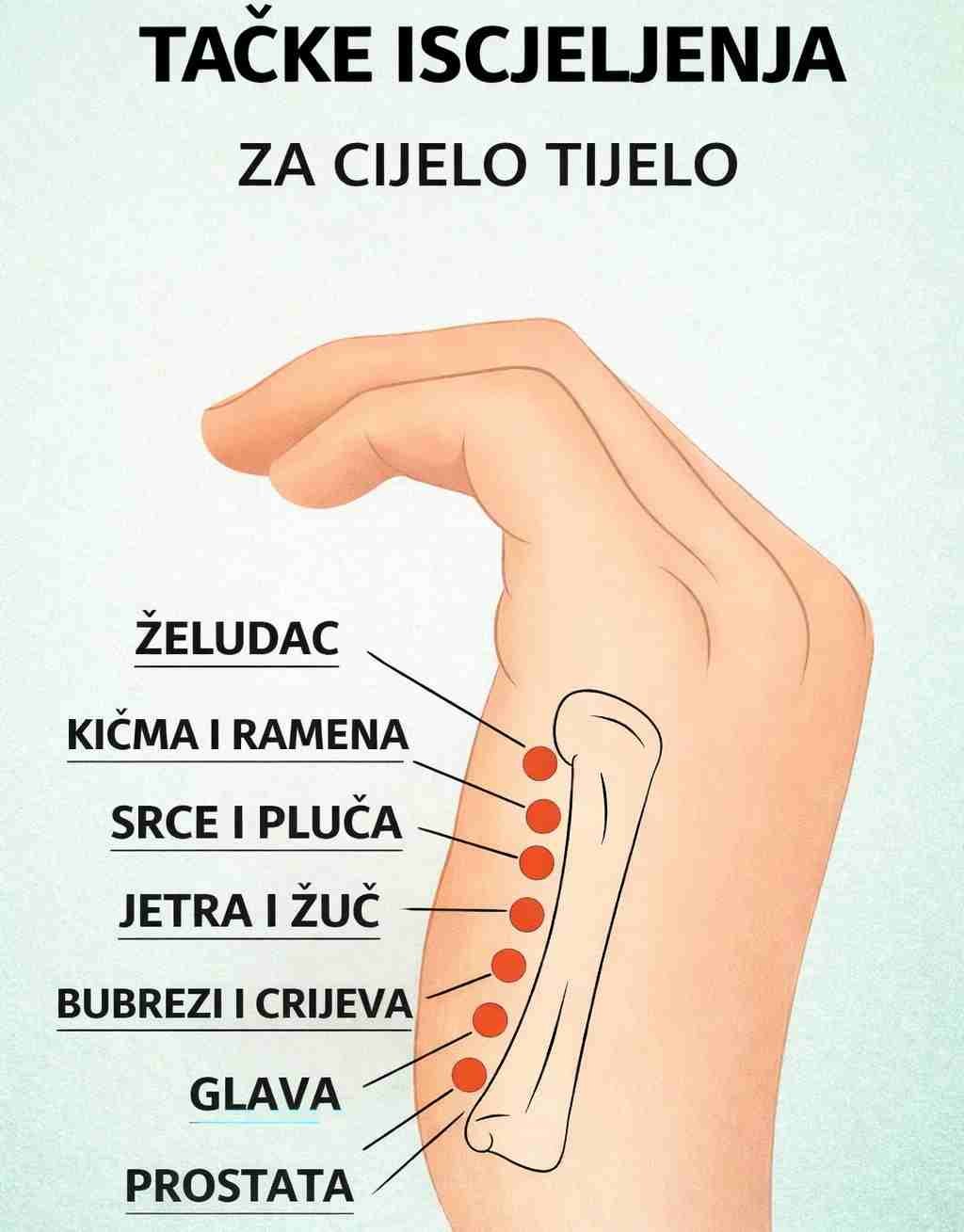 Na našim rukama nalaze se refleksne tačke koje su povezane s različitim organima i sistemima u tijelu. Blagim pritiskom ili masažom ovih tačaka može se potaknuti prirodni proces samoizlječenja, poboljšati cirkulacija i smanjiti napetost. Evo koje tačke imaju najveći uticaj:
