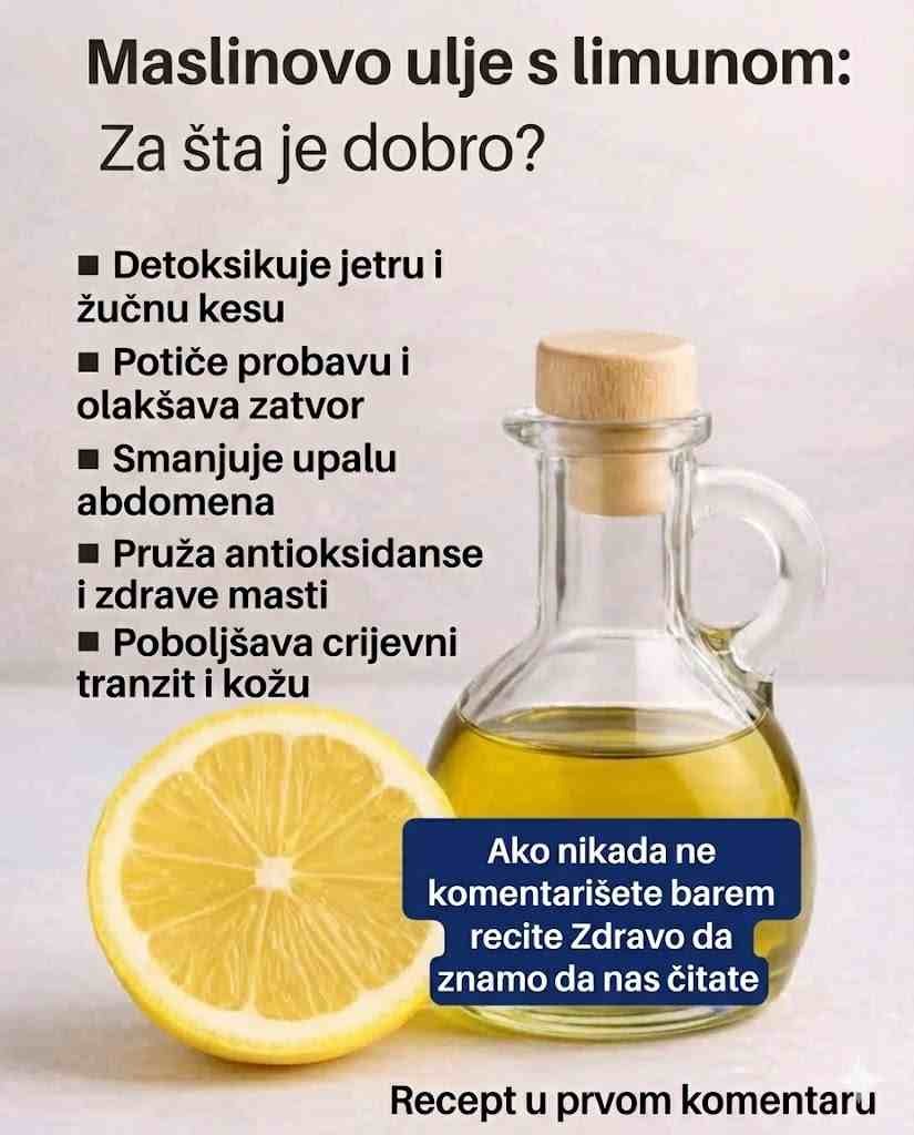 Maslinovo ulje sa limunom je jednostavan, prirodan način da podržite zdravlje probave, jetre, srca i imuniteta. Mala jutarnja navika, ali sa velikim pozitivnim efektima na tijelo i energiju. 🌿🍋