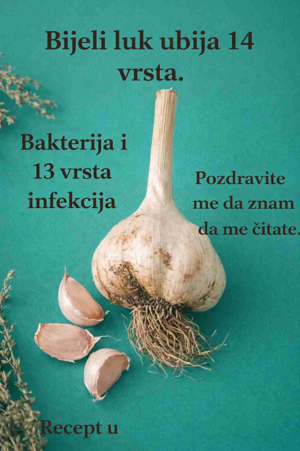 Često se kaže da bijeli luk “ubija 14 vrsta bakterija i infekcija”. Iako bijeli luk ima snažna antibakterijska i antifungalna svojstva, važno je naglasiti da on nije zamjena za medicinsku terapiju, već prirodna podrška zdravlju.
